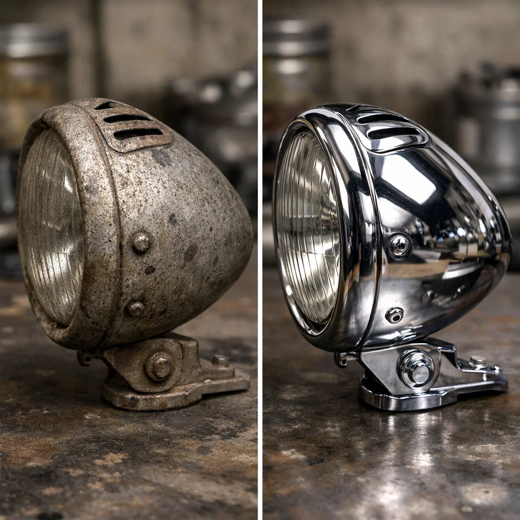 DGS rafforza la propria competenza nel restauro metalli, diventando un punto di riferimento per la lavorazione di moto e auto d’epoca, lampadari antichi e arredi classici. L’attenzione si concentra non solo sull’aspetto estetico ma anche sulla protezione nel tempo, attraverso cicli completi che includono ramatura protettiva, lucidatura e cromatura a spessore. L’azienda consolida così la propria identità come realtà capace di unire tradizione e innovazione.